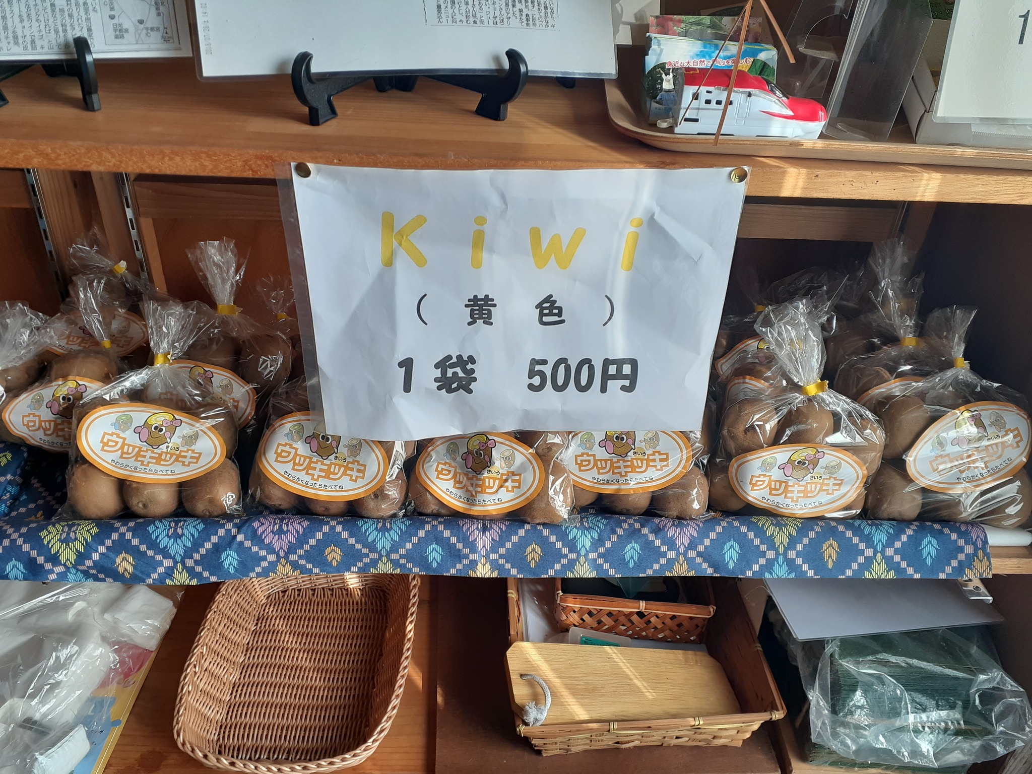 現在はキウイフルーツ(赤色、黄色)がたくさん並んでおります。